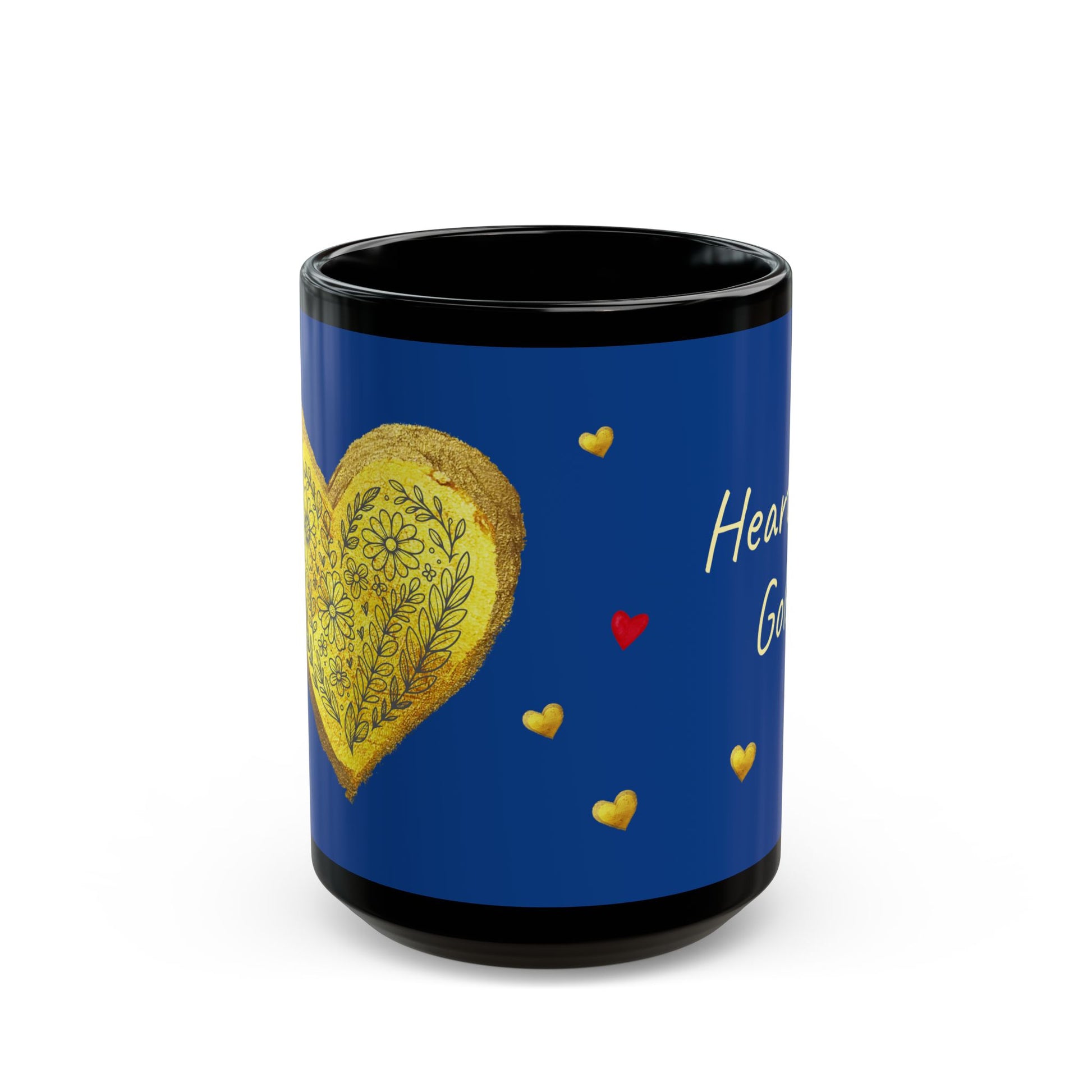 Dark Blue on Black Mug - Heart of Gold (15oz)