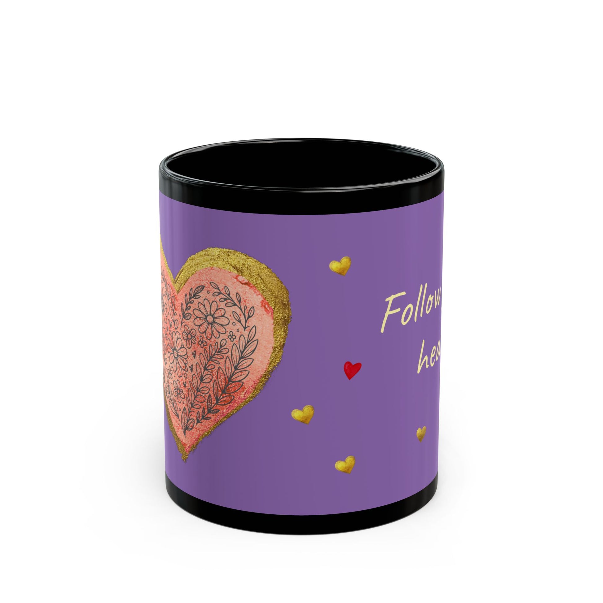 By Canyon 17, creations that inspire the mind and soul, this radiant and soulful 11 oz light purple on black ceramic mug features the beautiful Follow your heart print and design - perfect for your favorite coffee, tea, or hot chocolate. Made from 100% durable ceramic with a glossy finish, it’s microwave and dishwasher safe for everyday use. The high-quality sublimation printing brings this vibrant design to life, making it a thoughtful gift for anyone who appreciates beauty with their brew. It’s BPA and lead-free for safe sipping, with a comfortable C-shaped easy-grip handle for everyday use.