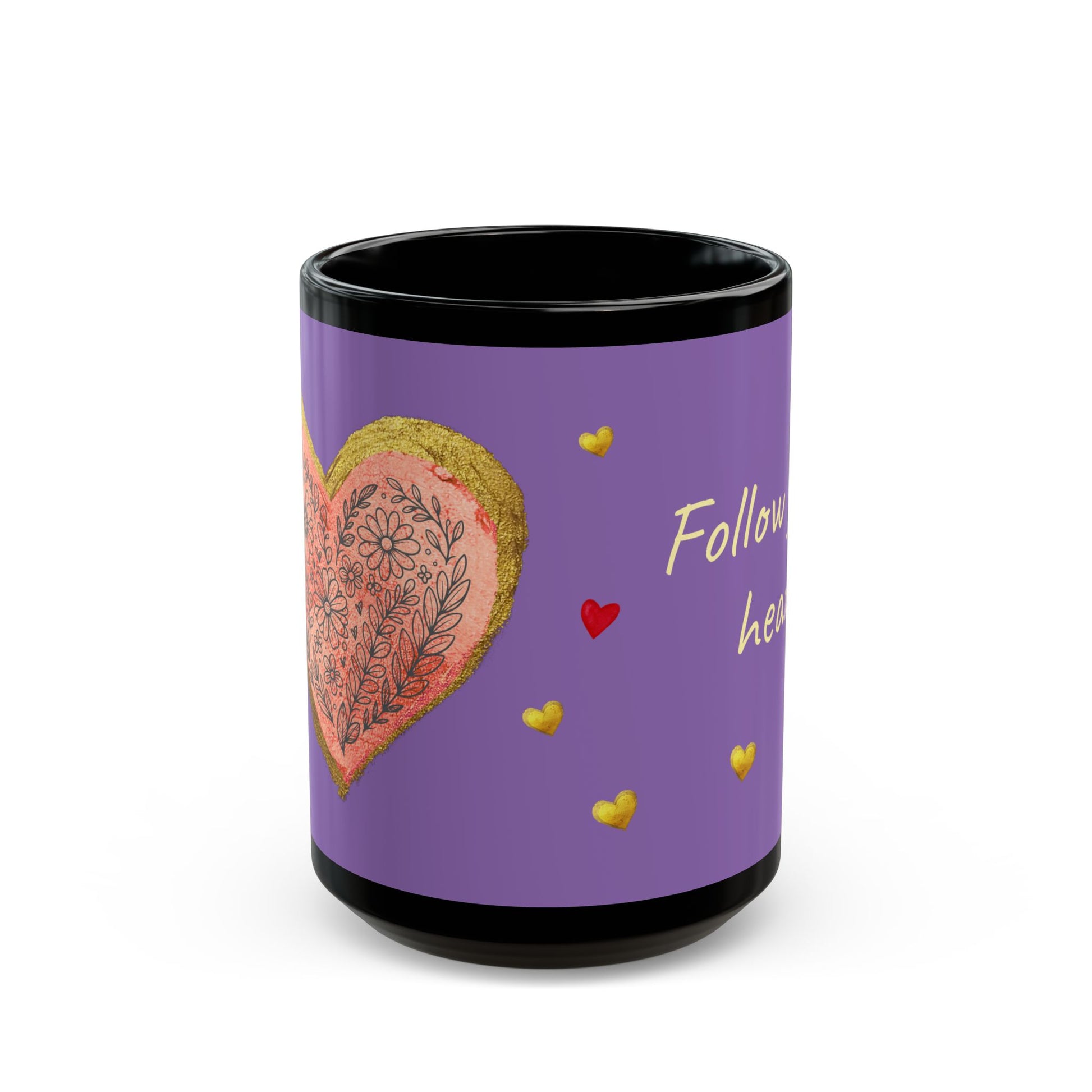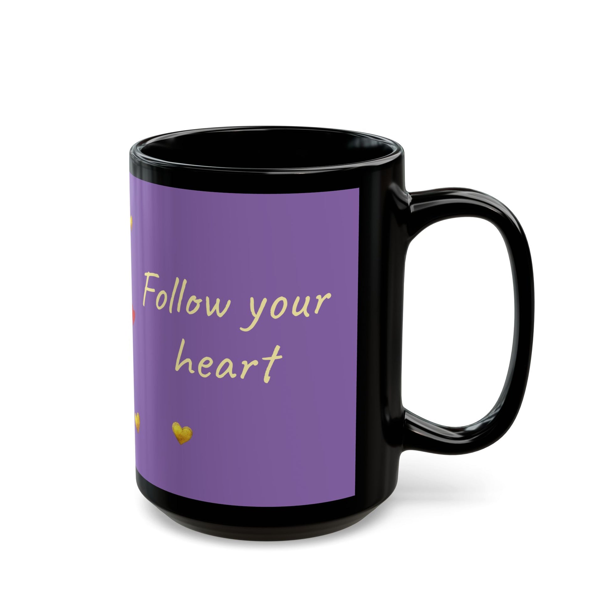 By Canyon 17, creations that inspire the mind and soul, this radiant and soulful 15 oz light purple on black ceramic mug features the beautiful Folow your heart print and design - perfect for your favorite coffee, tea, or hot chocolate. Made from 100% durable ceramic with a glossy finish, it’s microwave and dishwasher safe for everyday use. The high-quality sublimation printing brings this vibrant design to life, making it a thoughtful gift for anyone who appreciates beauty with their brew. It’s BPA and lead-free for safe sipping, with a comfortable C-shaped easy-grip handle for everyday use.