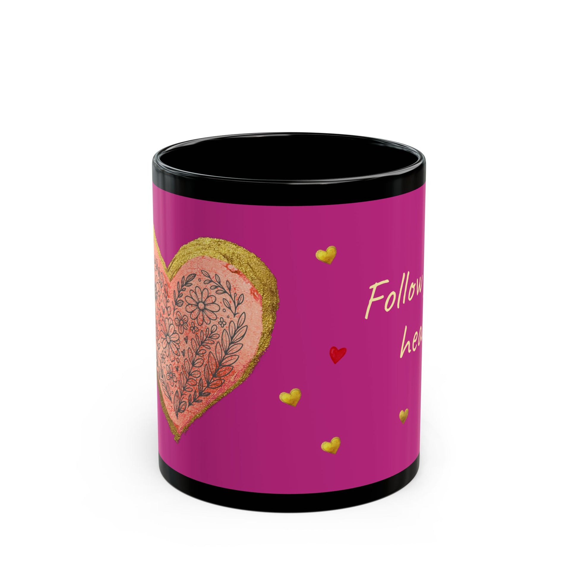 Pink on Black Mug - Follow your heart (11oz)