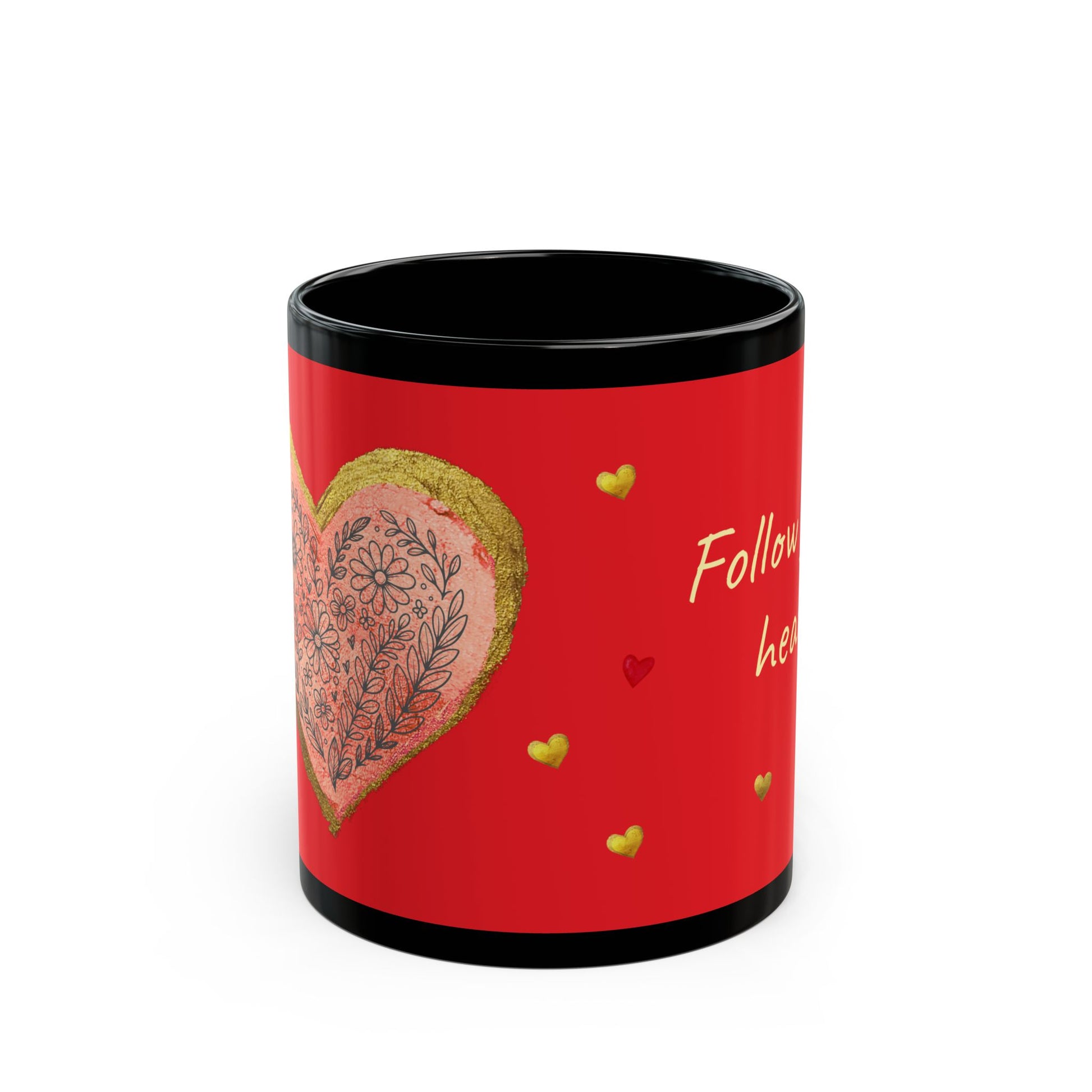 By Canyon 17, creations that inspire the mind and soul, this radiant and soulful 11 oz red on black ceramic mug features the beautiful Follow your heart print and design - perfect for your favorite coffee, tea, or hot chocolate. Made from 100% durable ceramic with a glossy finish, it’s microwave and dishwasher safe for everyday use. The high-quality sublimation printing brings this vibrant design to life, making it a thoughtful gift for anyone who appreciates beauty with their brew. It’s BPA and lead-free for safe sipping, with a comfortable C-shaped easy-grip handle for everyday use.