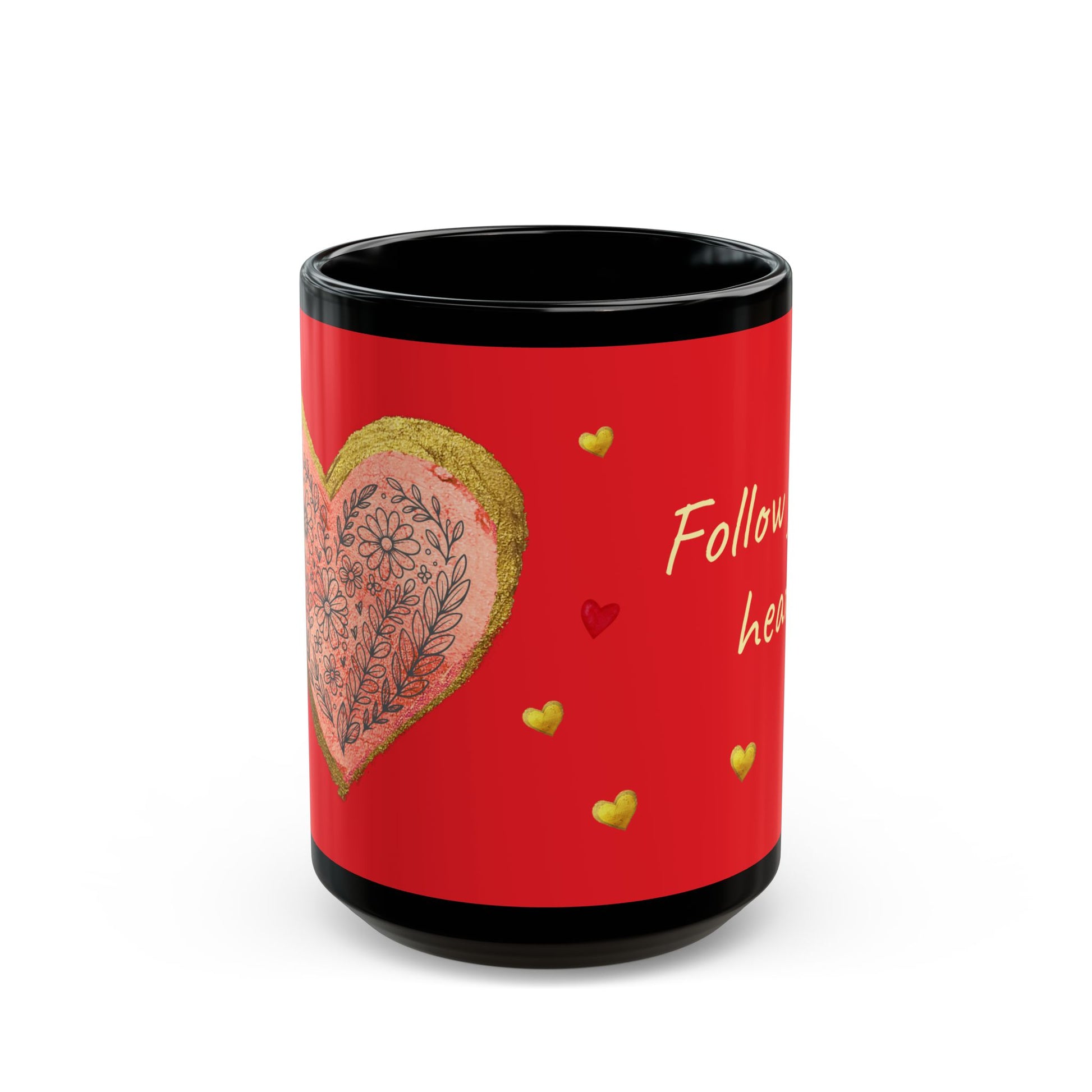 Red on Black Mug - Follow your heart (15oz)