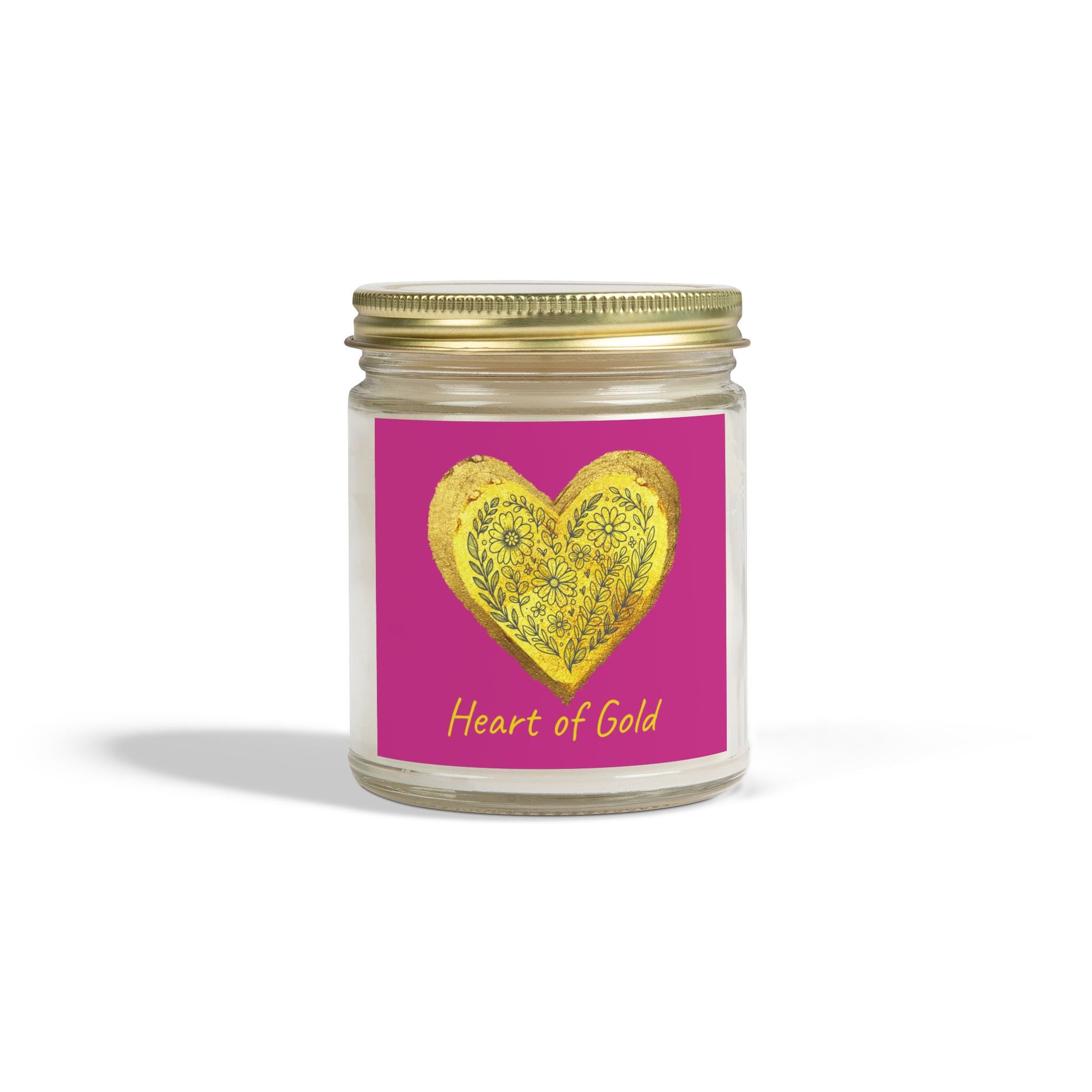 By Canyon 17, creations that inspire the mind and soul. Infuse your space with warmth and meaning with this beautifully crafted candle featuring our radiant "Heart of Gold" design, set against a pink background that adds a vibrant touch. Hand-poured in the USA from premium coconut apricot wax and finished with lead and zinc-free cotton wicks, they offer a clean, even burn and a rich aromatic experience. Choose from nine inviting scents, poured into elegant amber or clear glass vessels and topped with a stylish gold lid - perfect for adding ambient beauty to any home.