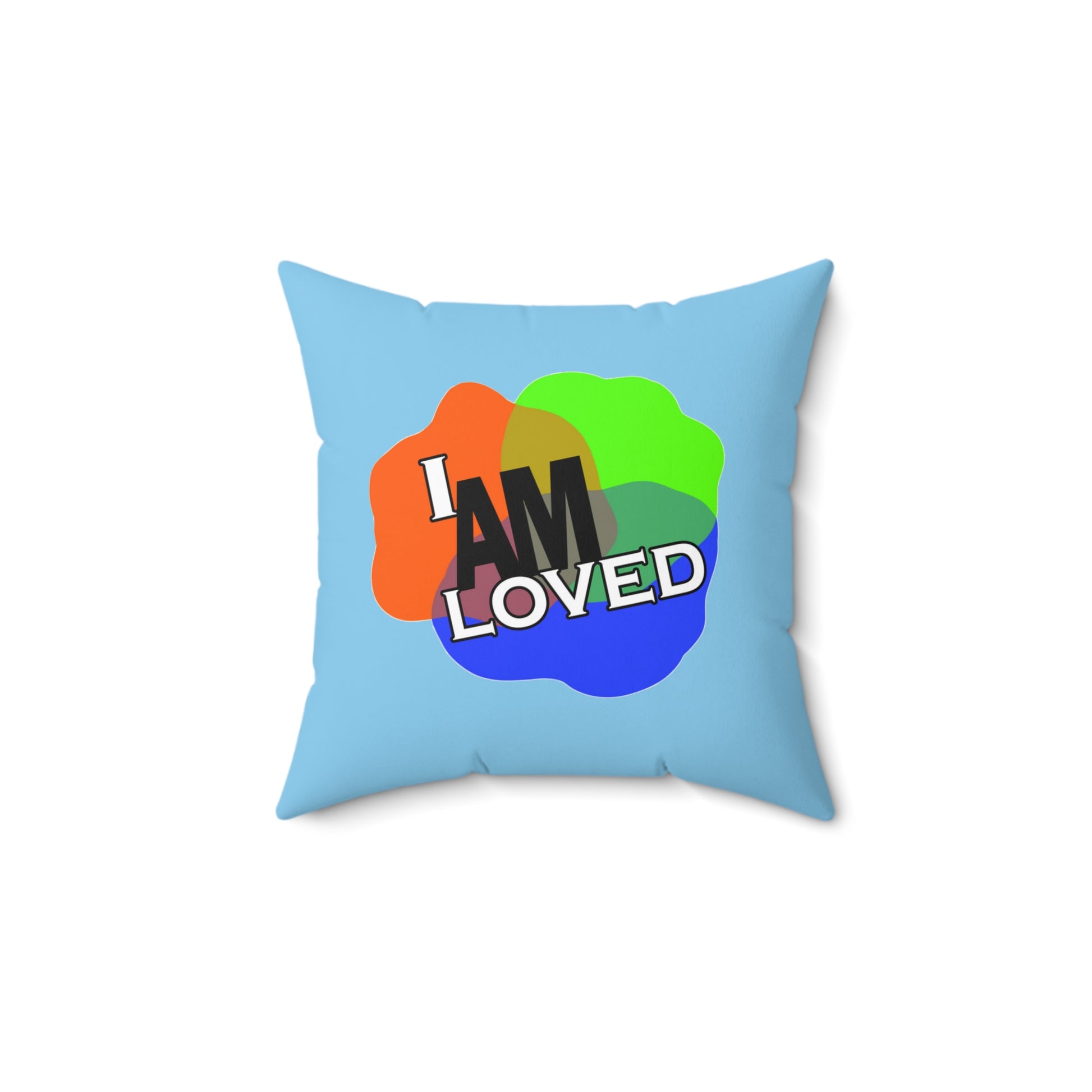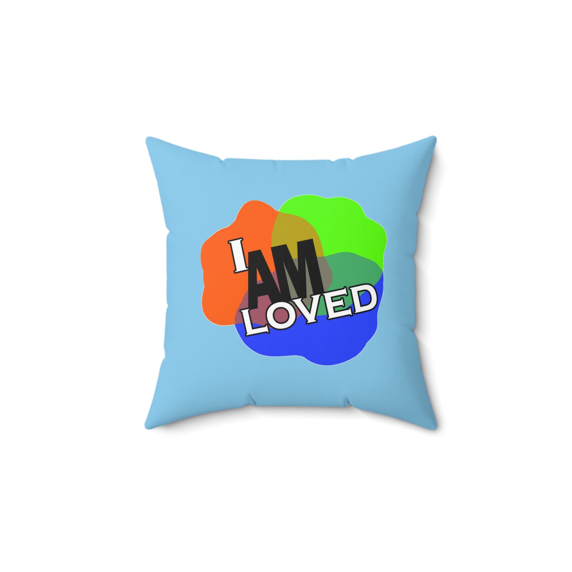 Spun Polyester Square Pillow - I Am Loved (Blue)